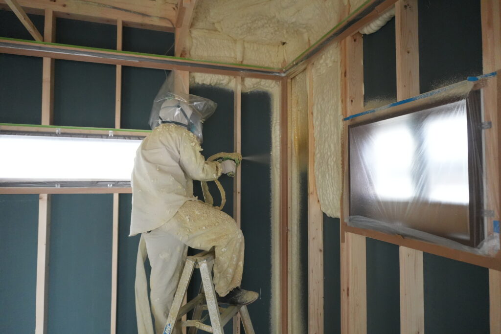 断熱材の吹付工事が無事に完了しました。